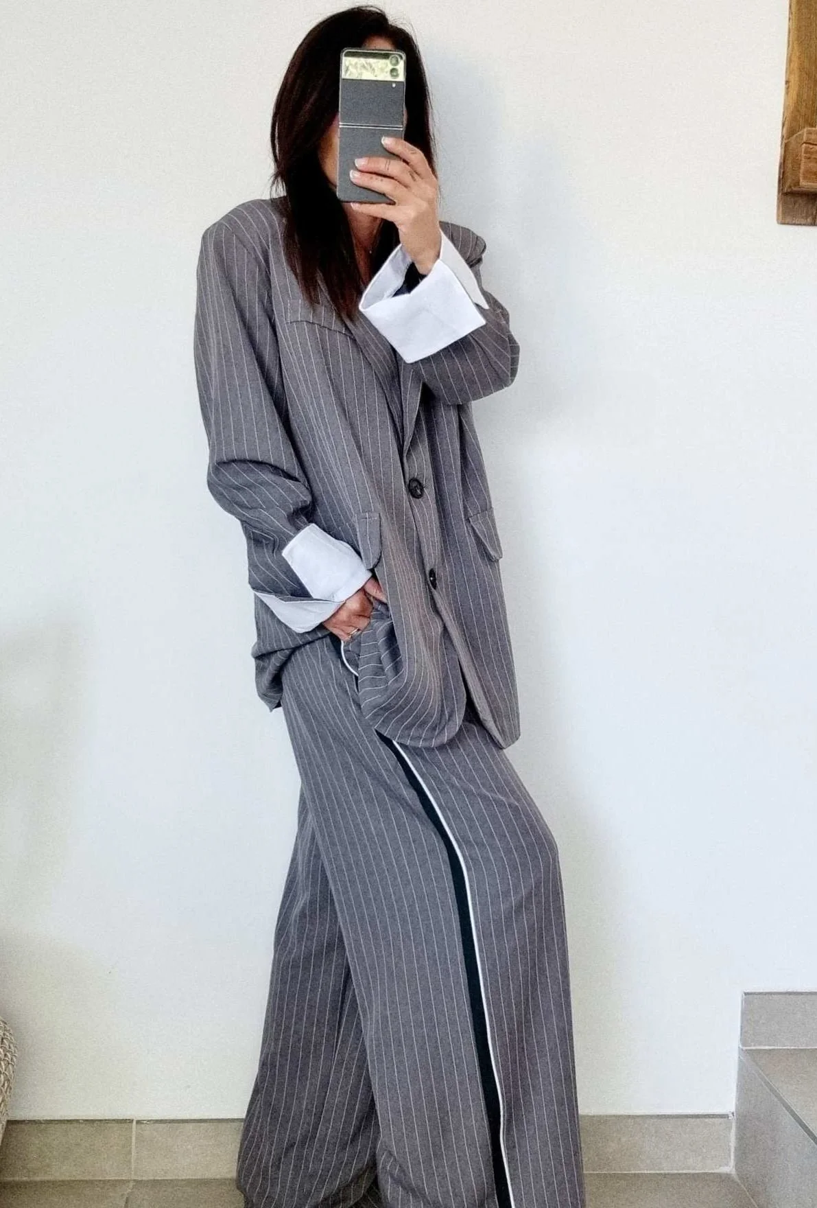Soyez le premier à laisser votre avis sur “Veste blazer oversize ANGELIQUE gris rayé”
