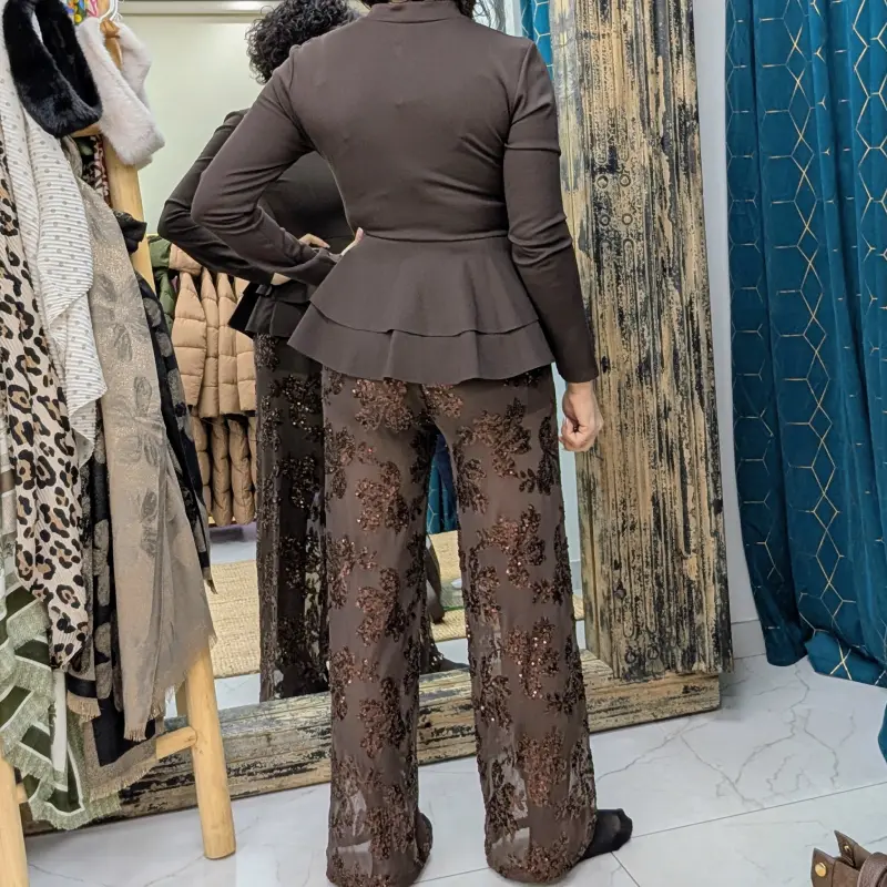 La veste de couleur noir ou marron est un incontournable pour toute femme soucieuse de son style. Avec son design moderne et sophistiqué, elle est idéale pour compléter vos tenues, que ce soit pour le travail, une sortie entre amis ou une occasion spéciale. Son col rond et sa coupe ajustée mettent en valeur le buste tout en offrant un confort optimal.