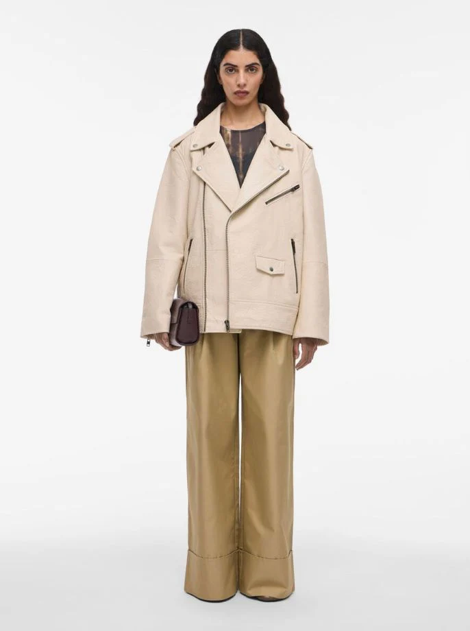 Veste en cuir écru Cornelia
