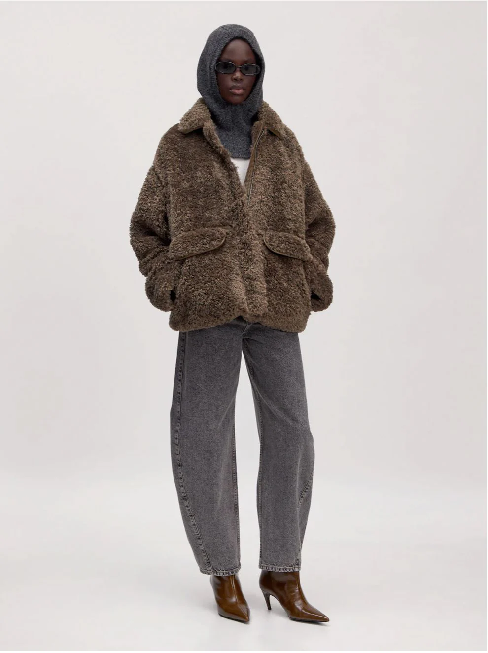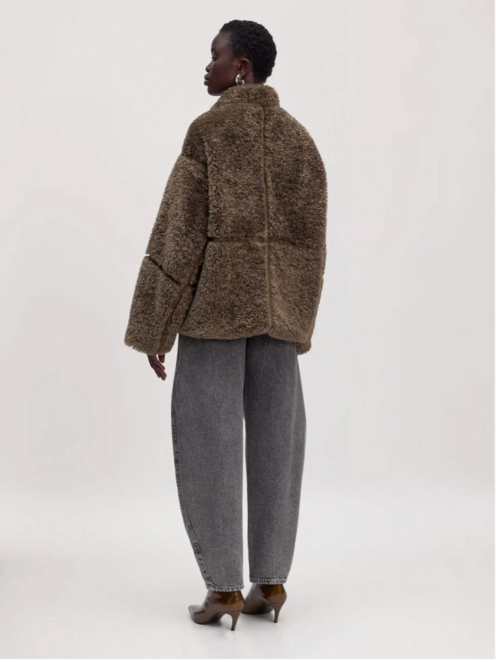 Veste zippée. Deux poches avant. Épaules tombes. Coupe normale.