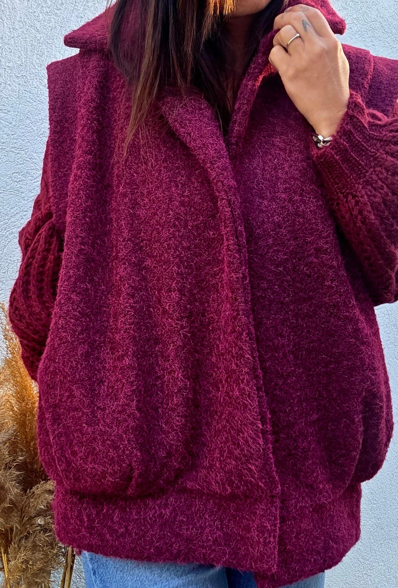 La veste sans manches PATRICIA bordeaux est l’alliée parfaite pour un look moderne et confortable en toute saison. Sa coupe oversize et son col large lui donnent une allure chic et décontractée, idéale pour compléter vos tenues automne-hiver. Son toucher doux et duveteux apporte une vraie sensation cocooning, tout en conservant une silhouette élégante.