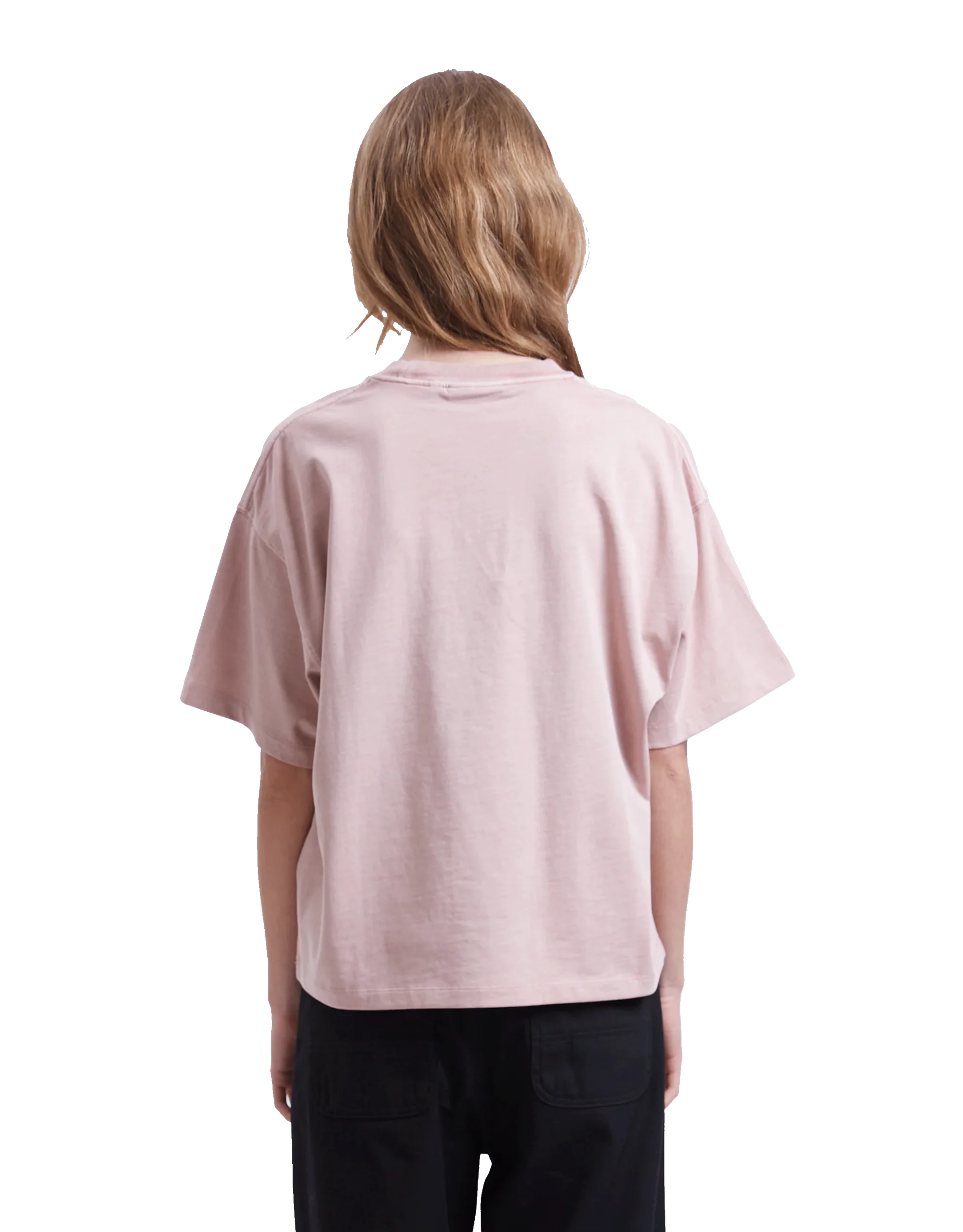 The Carhartt WIP W’ S/S Benton T-Shirt in Glassy Pink Garment Dyed viser brandets dedikation til at kombinere tidløs stil med kvalitetsmaterialer. Fremstillet i tung bomuldsjersey, denne t-shirt har en relaxed pasform og en blød finish, opnået gennem garment dyeing. Dens minimalistiske design gør den til et alsidigt supplement til enhver garderobe og løfter nemt afslappede looks. Perfekt til dem, der værdsætter underspillet mode, denne t-shirt indkapsler Carhartt WIP’s engagement i holdbart men stilfuldt tøj.